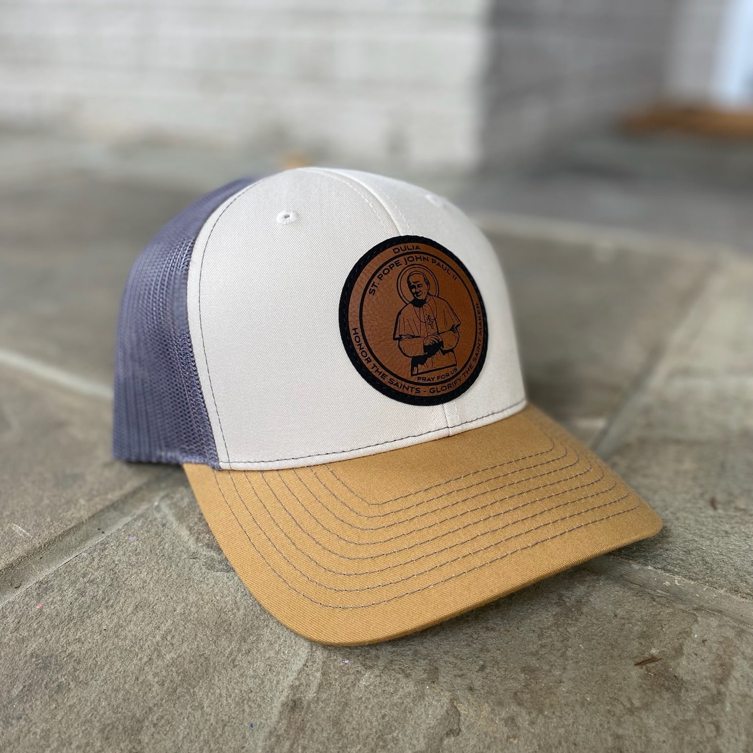 Crafted for comfort, our hats are made from durable and breathable materials to fit your lifestyle. Each features a hand-crafted, high-quality leather patch honoring the saints, complemented by rugged, masculine colors that suit your style.